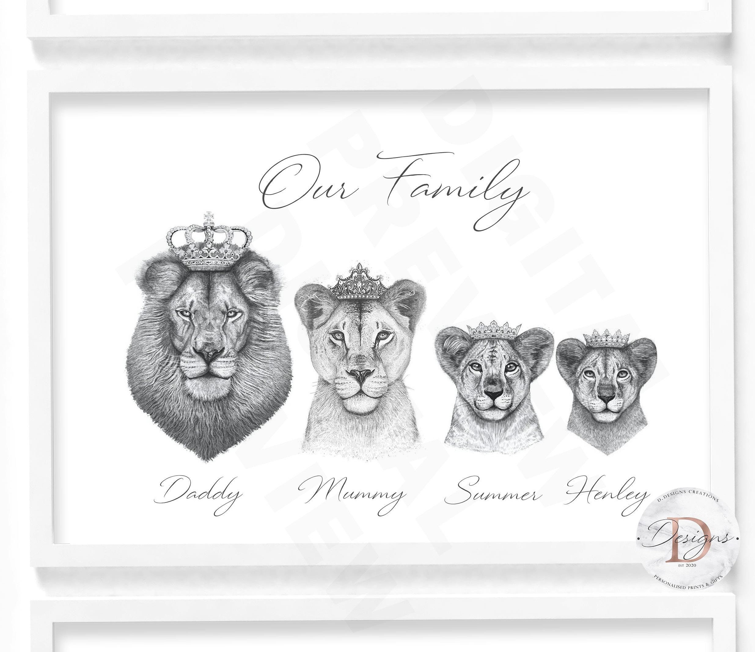 Personalised Lion Family Couple Prints King Queen Cubs Etsy